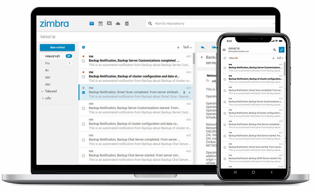 บริการอีเมลพร้อมใช้งาน ขับเคลื่อนด้วย Zimbra 9 Professional Edition (รุ่น Top สุด / ไม่ใช่เวอร์ชั่น Open Source) ภายใต้โครงสร้างพื้นฐานคลาวด์ในประเทศไทย ระบบรักษาความปลอดภัย พร้อมบริการดูแลช่วยเหลือตลอด 24 ชั่วโมงจากทีม Zimbra