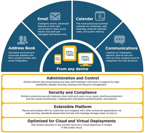 Zimbra เป็นบริการแบบ PaaS (Platform as a Services) ทำงานอยู่บนโครงสร้างพื้นฐานส่วนตัว มีเฉพาะองค์กรของคุณเท่านั้นที่ใช้งาน สิทธิ์สูงสุดในการบริหารจัดการจะอยู่ในระดับของ Root มีความยืดหยุ่นสูงกว่า SaaS สามารถปรับแต่งหรือกำหนดนโยบายการให้บริการได้ตามความต้องการใช้งานของคุณ (Best Fit Solution)