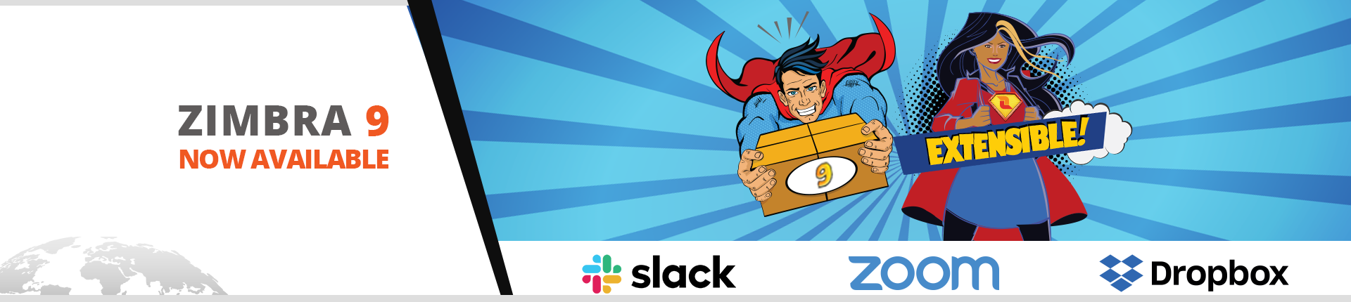 Zimbra 9 เพิ่มขีดความสามารถในการทำงานร่วมกับผลิตภัณฑ์ชั้นนำของโลก เช่น Slack, Dropbox และ Zoom ได้อย่างลงตัว ด้วยเครื่องมือที่อำนวยความสะดวกและช่วยให้ผู้ดูแลระบบสามารถบริหารจัดการ Zimbra Server ได้อย่างง่ายดาย